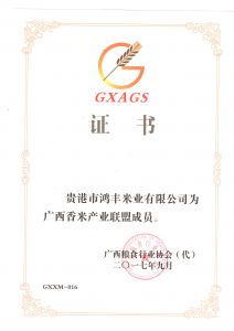 廣西 香米聯盟證書